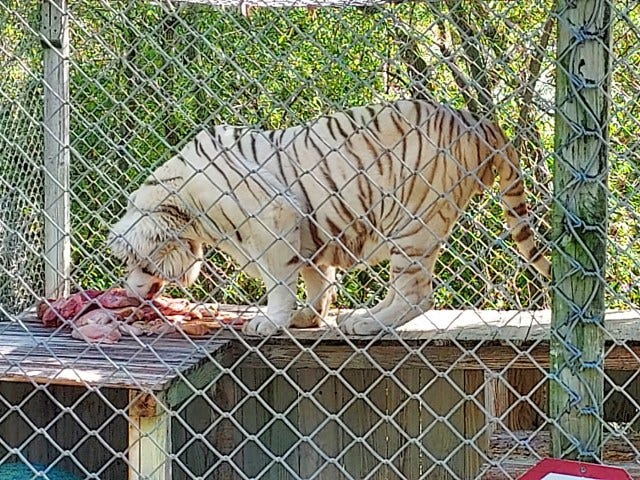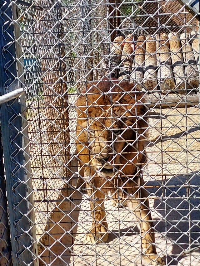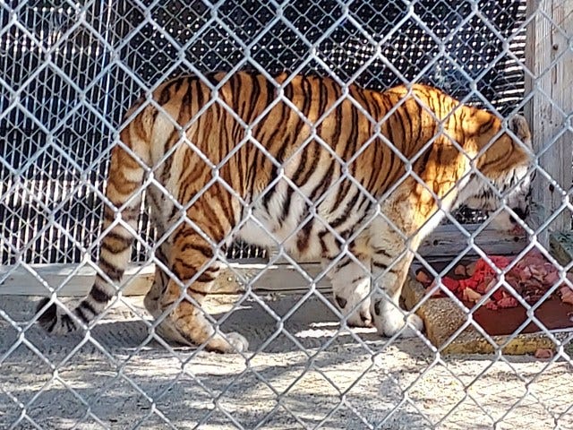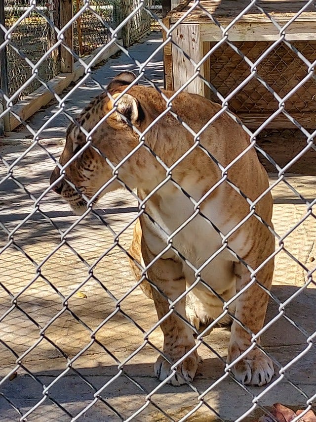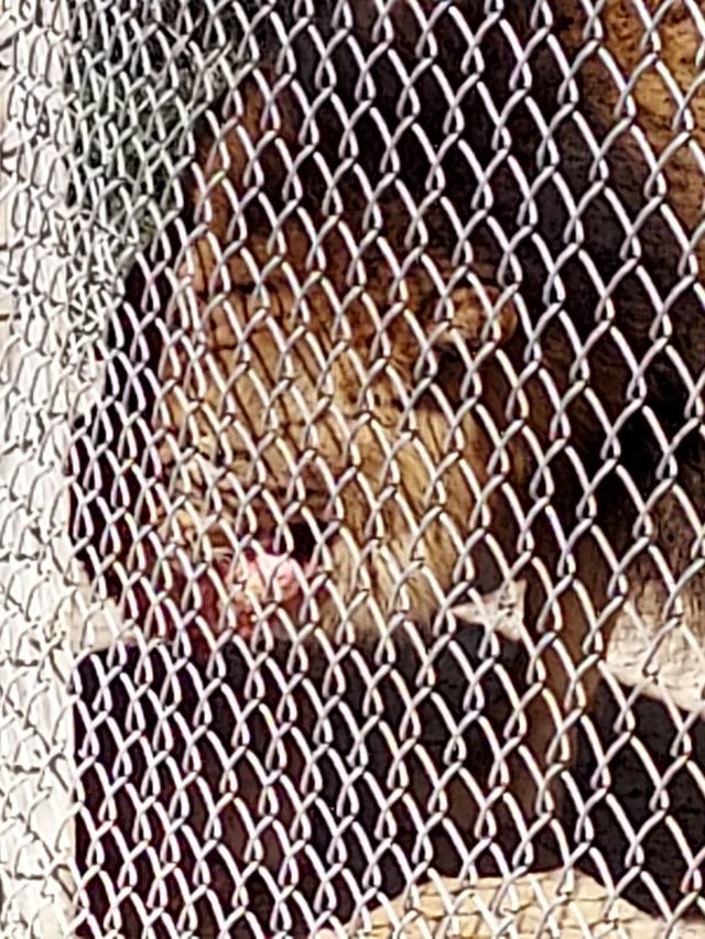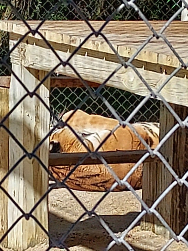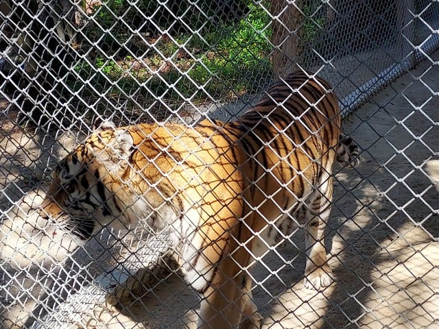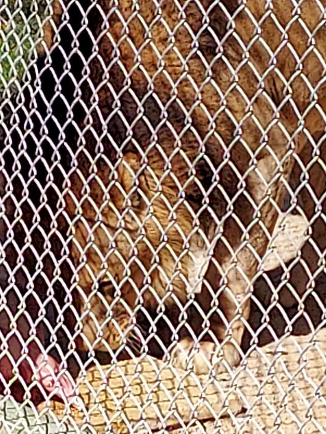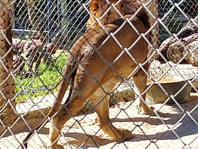 My wife and I went here with friends back in January and I forgot all about doing a post, so here it is! Lions, tigers and bears. Oh my! Plus, hyenas, monkeys, turtles, birds, cougars, canines and more. Everybody is behind chain link fences (which is a good thing), but it kind of makes it hard to get a good picture as you will see in my pics that follow. They have nice fence free pictures on their website which you can go to by clicking here.